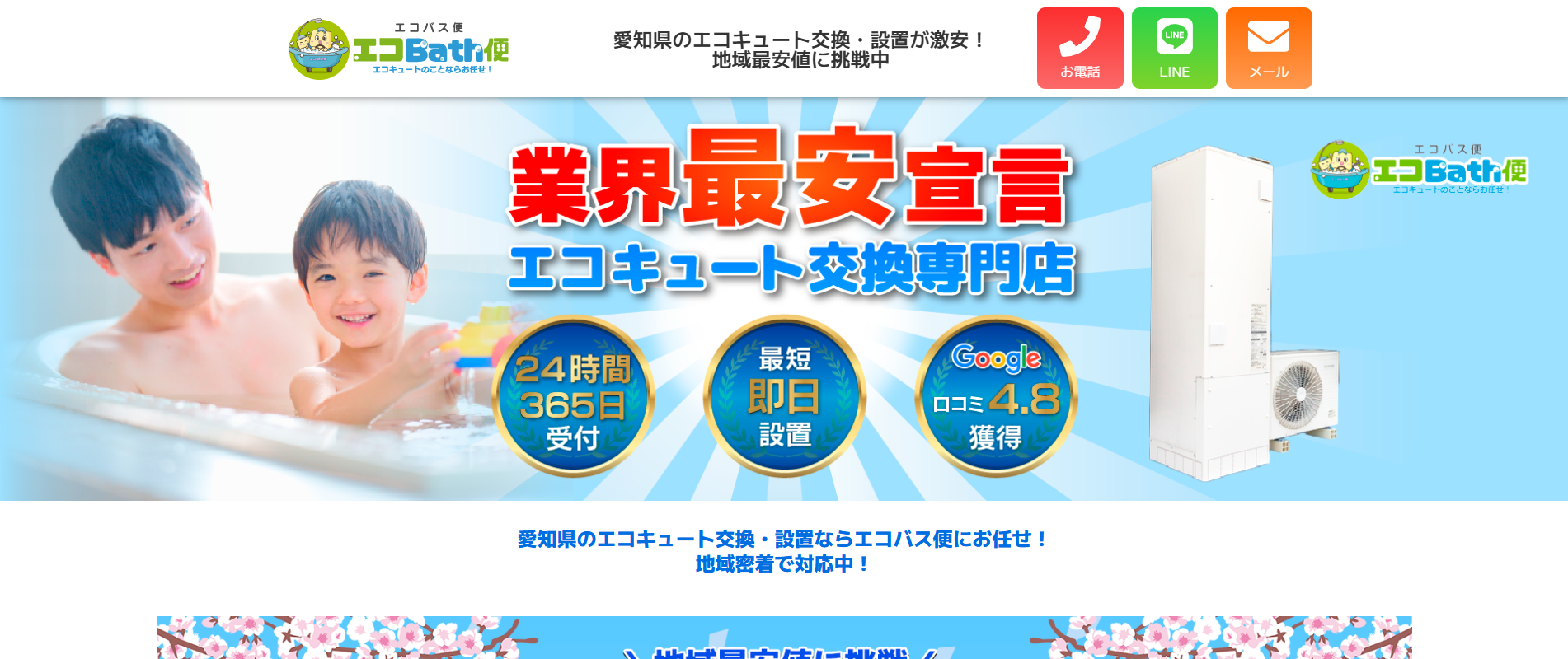 愛知県内でのエコキュート設置・交換専門業者を探している方には、業界最安値を掲げる「エコバス便」もおすすめです。
